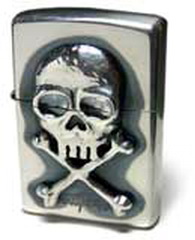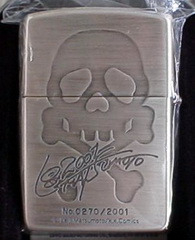Zippo argenté en édition limitée (999 ex.) représentant une tête de mort et signé par Leiji.